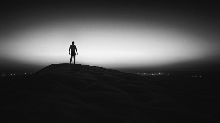 With respect to my own work, I have explored themes such as solitude. In doing so, I came to embrace a methodology that included a lone subject silhouetted in a vast space, presented as a black and white image with dark shadows and dramatic lighting, shot with a wide angle lens, and using the self-timer on a ground-tripod-mounted camera.