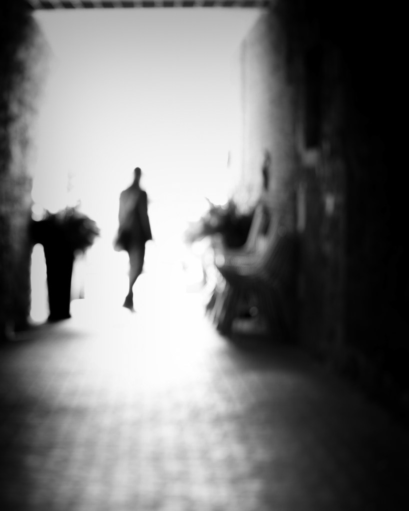 My “people photography” is typically autobiographical or shot in a manner that leaves the subject anonymous. My methods include silhouetting, shooting from a distance with a wide-angle lens to diminish the subject and enlarge the environment, shooting long exposures that blur the subject, and deliberately out-of-focus shots. My preference for black and white photography further abstracts human subjects by highlighting light and shadow, emphasizing shape and form, and focusing on tonal range and emotional impact. This approach aims to preserve the subject’s privacy while allowing me to explore themes of isolation and alienation and express them in a dystopian aesthetic.